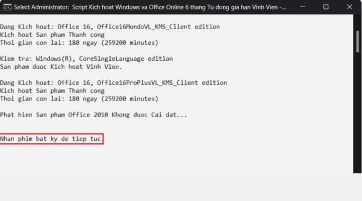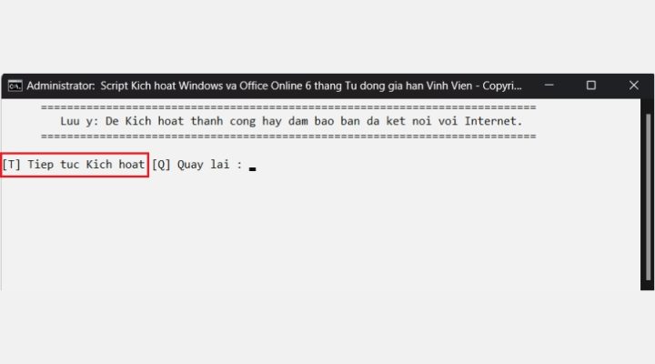 Hành động 5: Tiếp tục nhấn phím T để công cụ tự động cấu hình chế độ kích hoạt vĩnh viễn, giúp license luôn được duy trì ổn định.